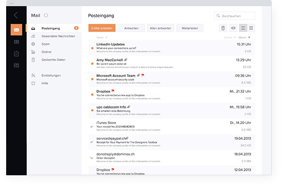 Écrire des e-mails, sauvegarder des brouillons ou marquer et classer des messages – tout est facile avec l'interface claire du webmail !